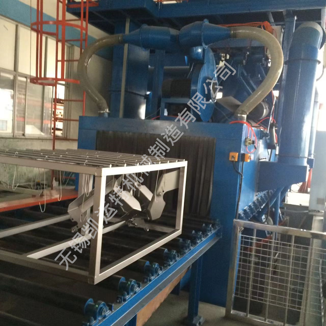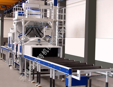 噴砂房左右兩側(cè)各配有一臺電動工作小車,方便操作員噴砂作業(yè),整個噴砂房內(nèi)襯耐磨損、降噪音的橡膠襯板
